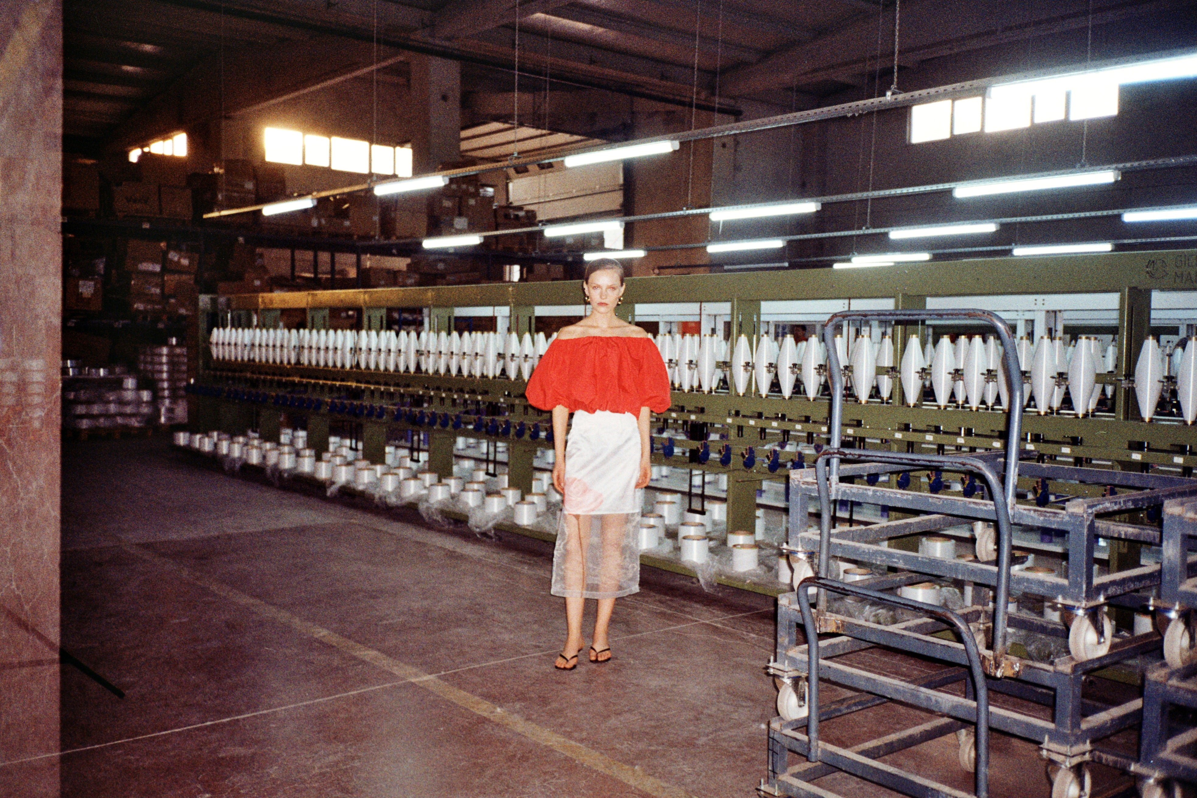 Photographed in a working textile mill outside Bursa. Amid raw looms and threads in motion, the collection unfolds in scenes of industry and stillness, a quiet study in sophisticated minimalism. The gaze lingers not on the face, but on the fabric, its origins, its quiet force.
